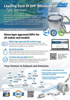 Europeโ€™s widest selection of Euro VI Type Approved DPFs for Trucks and Buses with Dinex. Trust our range of New and Reconditioned filters, all tested to OE standards, to keep you on the road.